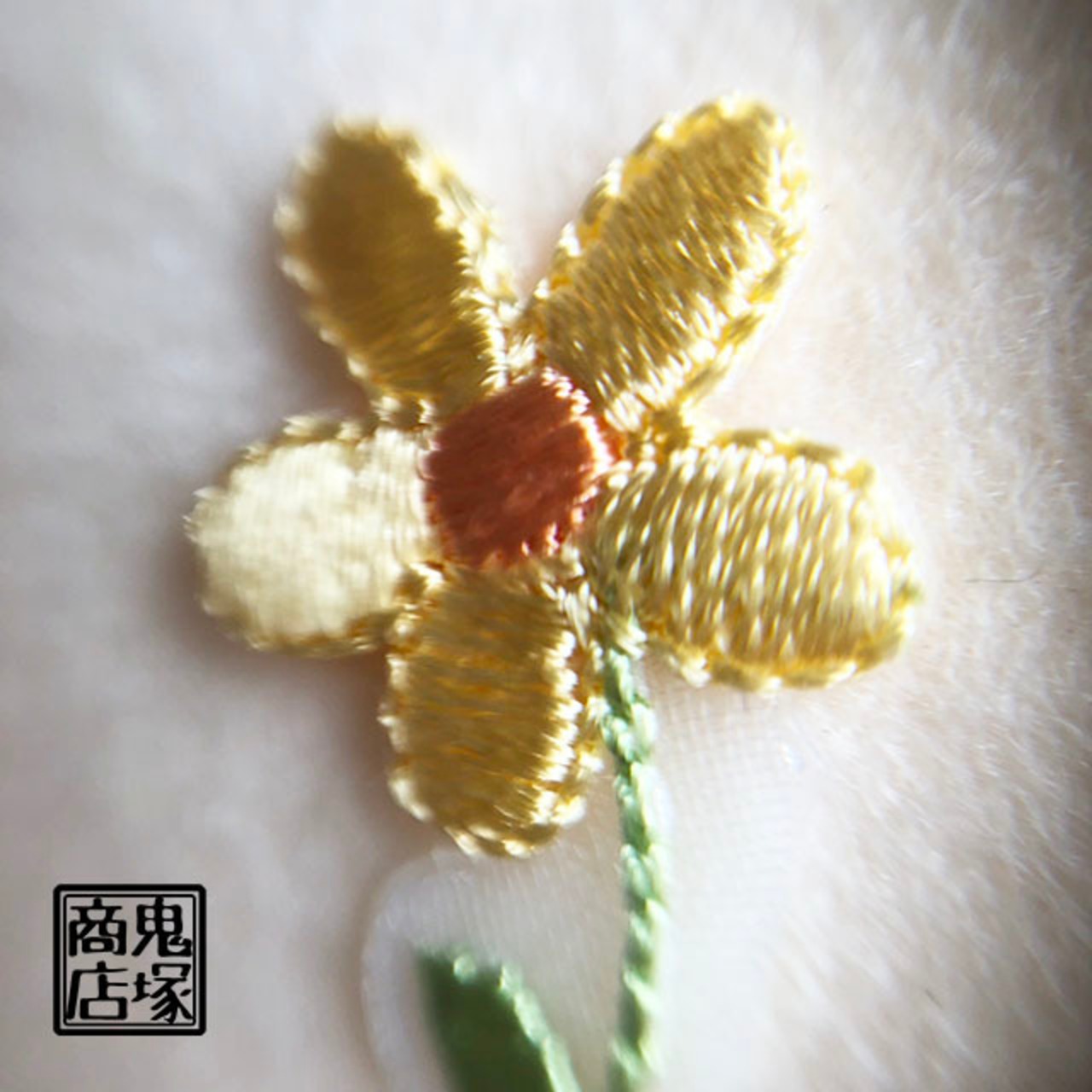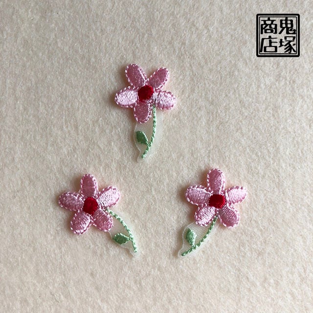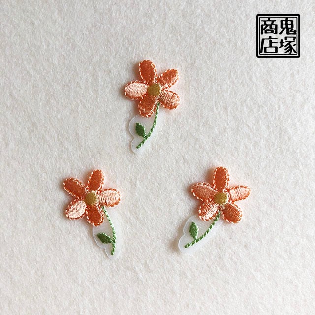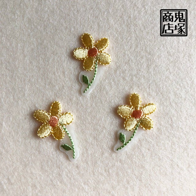 お花畑から摘んできたようなお花1輪ずつのかわいらしい刺繍アップリケです♪