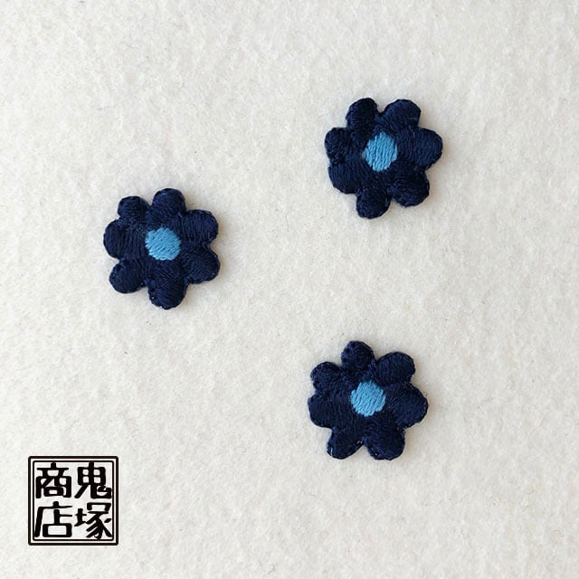 ほっこり刺繍のお花アップリケ ブルー