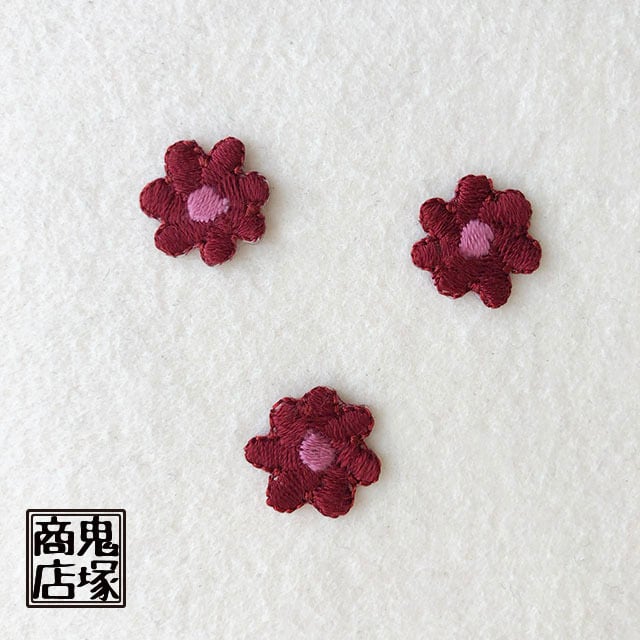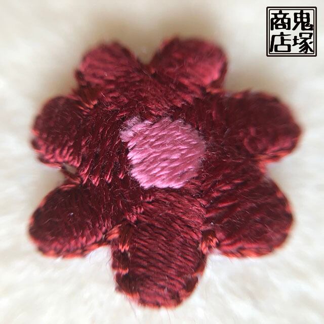 ほっこり刺繍のお花アップリケ レッド